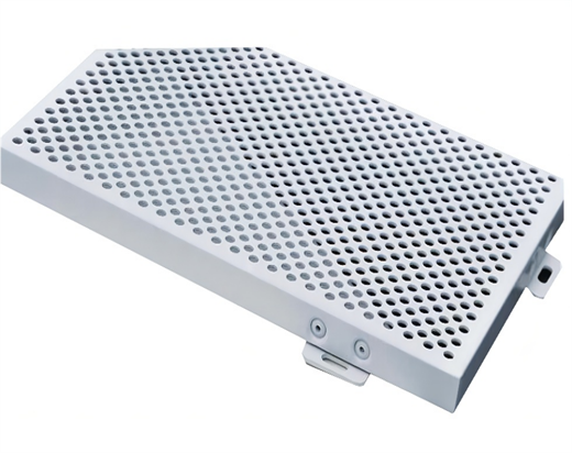 Punched aluminum single plate is a new type of curtain wall material that uses high-quality aluminum alloy sheet as the base material, and is formed by CNC bending and other technologies, and the surface is sprayed with decorative coatings.