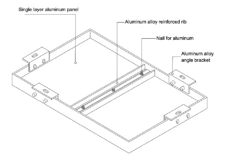 The aluminum veneer is mainly composed of panels, reinforcing ribs and corner codes.
